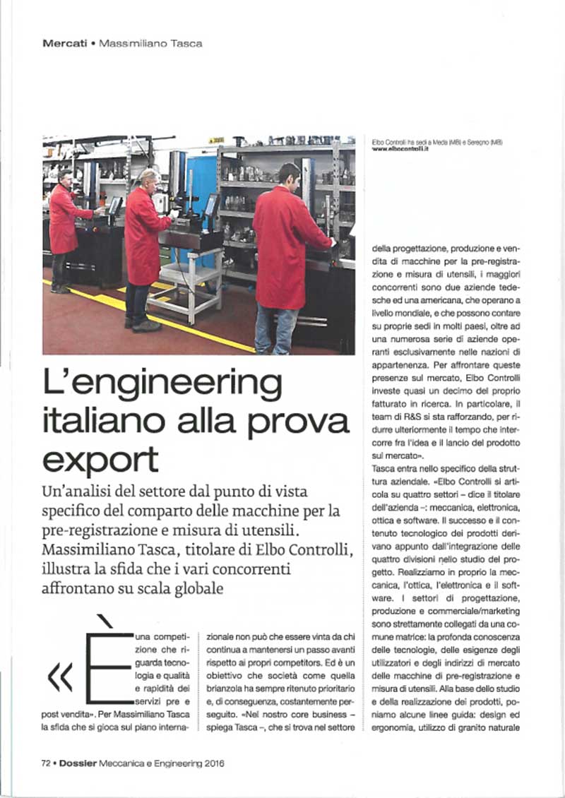 Massimiliano Tasca, administrador único da Elbo Controlli S.r.l., concedeu uma entrevista para o encarte “Dossier Meccanica & Engineering”, presente dentro da edição de abril de 2016 de “Il Giornale”.